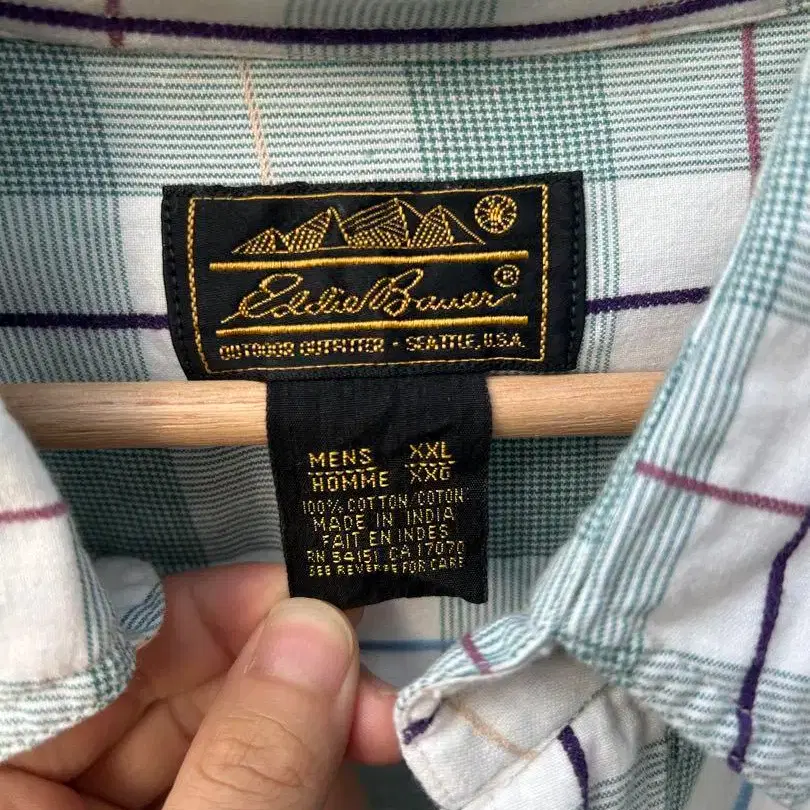 • Eddie Bauer 박스 체크 프린트 택 코튼 셔츠 XL