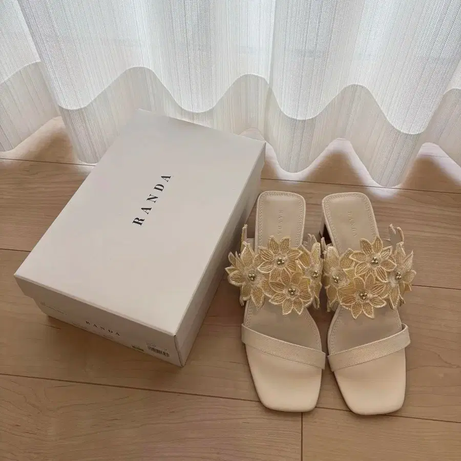 • 할인 새상품급 RANDA 플라워 비즈 뮬 샌들 화이트 결혼식