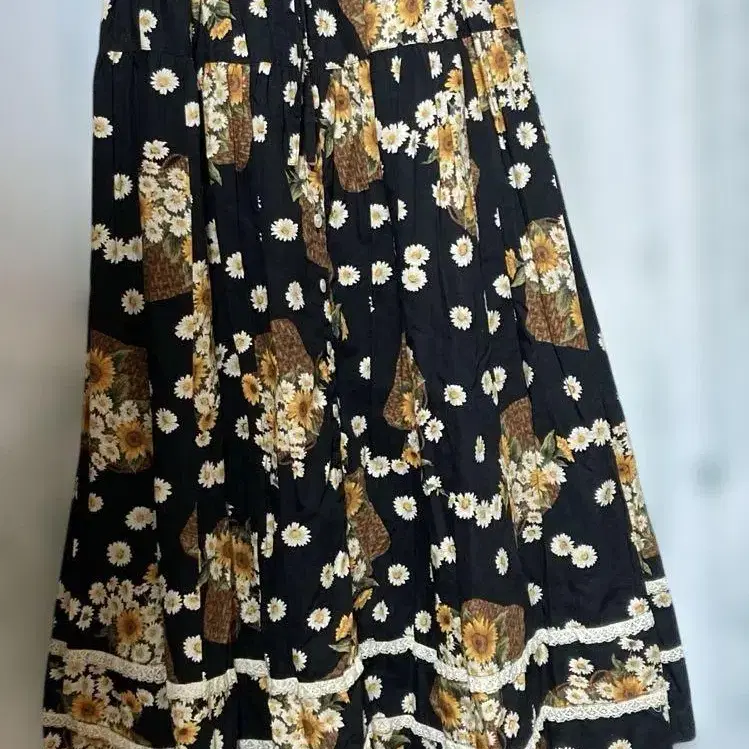 가격 인하! 꽃무늬 롱 스커트 블랙 계열