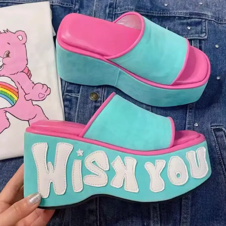 통굽 샌들 민트 그린 터콰이즈 컬러