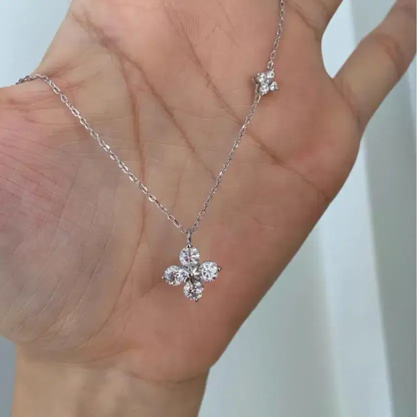 꽃 모양 크리스탈 스톤 목걸이 실버