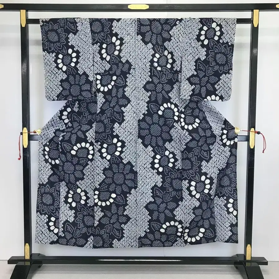 유카타 아리마츠/나루미 시보리 해바라기 패턴 파랑 갈색 KK-1595