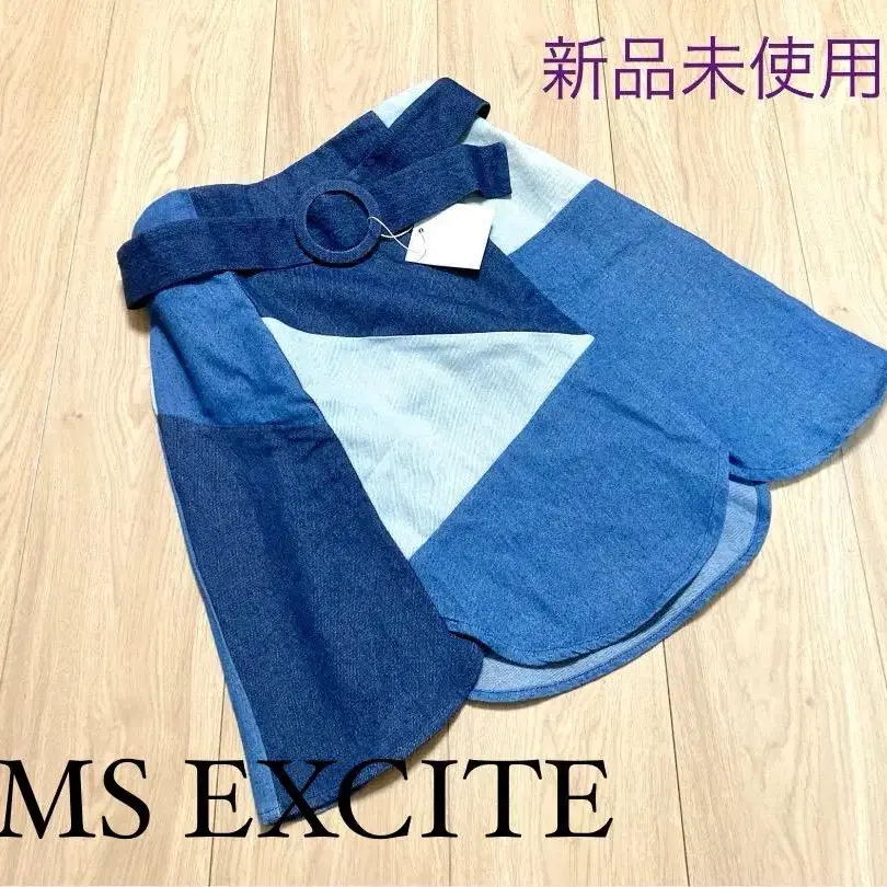 EMS EXCITE 데님 패치워크 미니 스커트 벨트 포함 데님 슬림