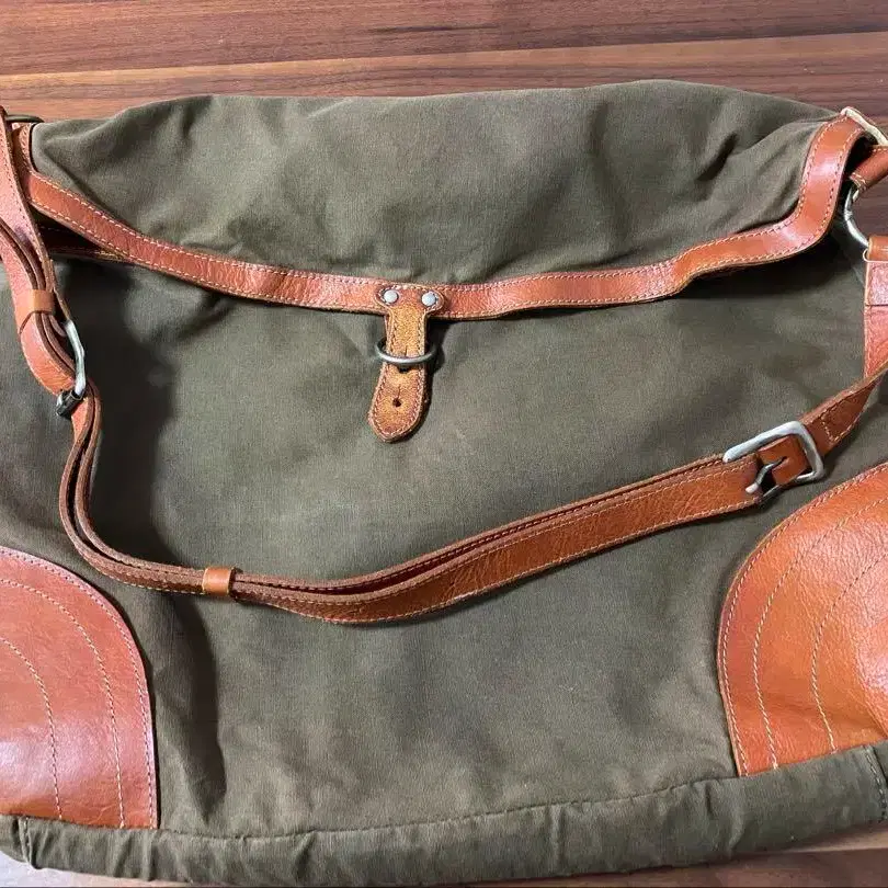 올리브 그린 캔버스와 가죽 숄더백, 조절 가능한 스트랩과 플랩 포켓이 특징입니다. - 색상: 올리브 그린 - 소재: 캔버스, 가죽 - 스트랩: 조절 가능한 숄더 스트랩 - 포켓: 외부 플랩 포켓 - 디자인: 가죽 패치가 돋보이는 심플한 디자인 방문해 주셔서 감사합니다.