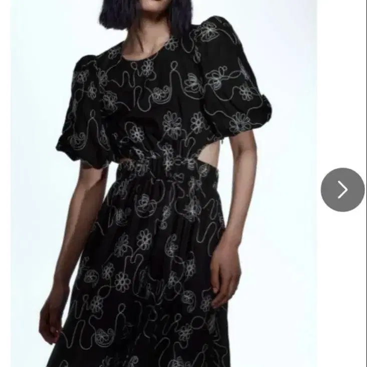 자동 번역되었어요. 원문보기자수 장식된 백 디자인과 볼륨 소매가 특징인 자라 원피스.