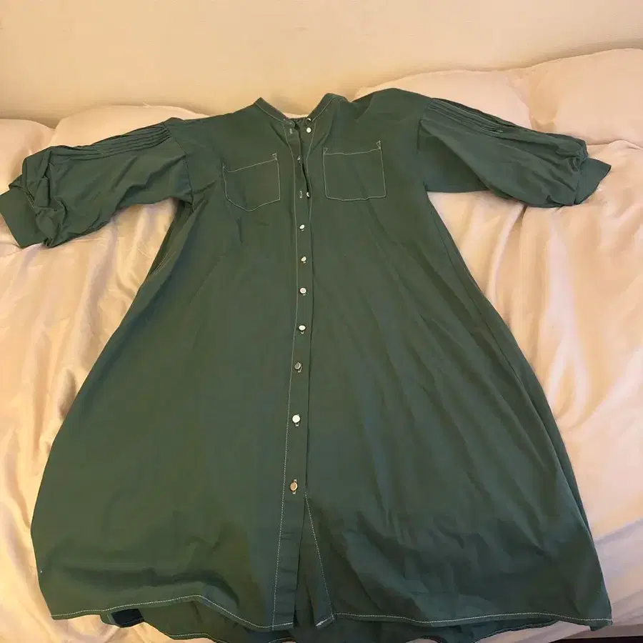 그린 셔츠 원피스 긴팔 포켓 부착