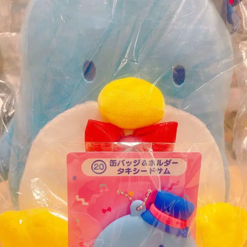 로손에서 판매된 하피단부이 복권으로 당첨된 상품입니다. 원하는 상품이 아니어서 판매합니다. 턱시도 샘 봉제 인형과 캔 배치, 홀더입니다.