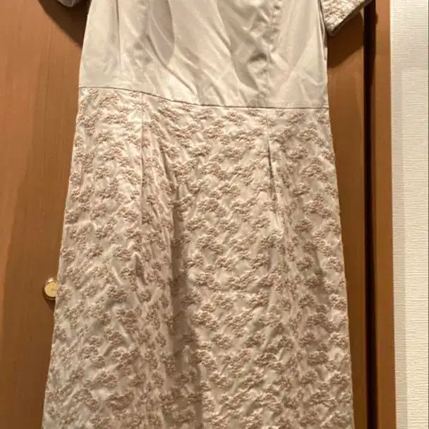 • [ 새상품 ] TO BE CHIC 꽃무늬 자수 베이지 7부 소매 원피스