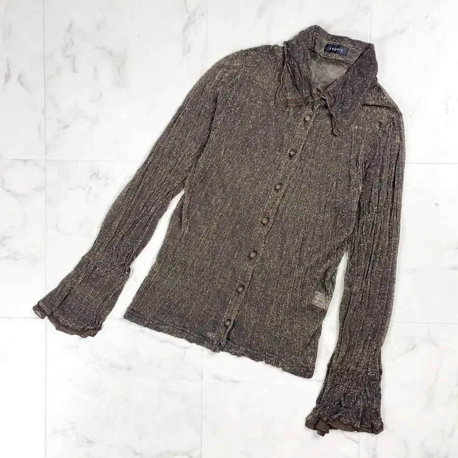 자동 번역되었어요. 원문보기LOUNIE 루니 시어 글리터 셔츠 긴팔 블라우스 라메 스트레치 시스루 여성용 브라운 갈색 사이즈 M 상당*CD222