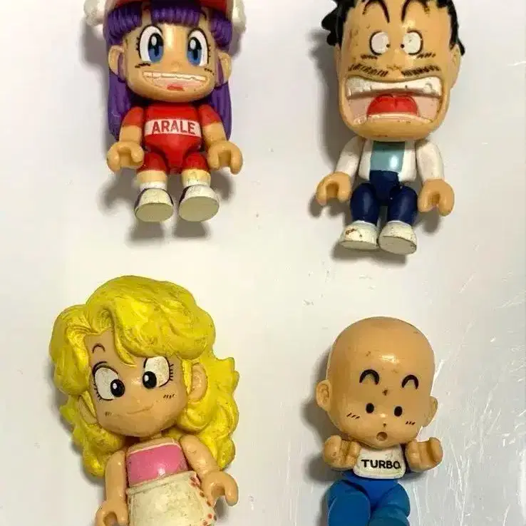 Dr. 슬럼프 아라레짱 액션 피규어 4종입니다. 피규어의 크기는 약 4.5cm입니다. 사진에 찍힌 4종만 있습니다. 오래된 골동품으로 자택에서 보관하고 있었습니다. 오래된 물건으로 신경 쓰이는 분은 구매를 자제해주세요!!! 방문해 주셔서 감사합니다.
