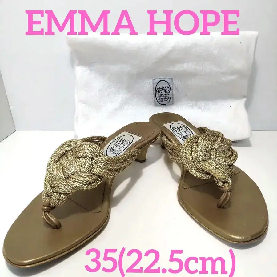 EMMA HOPE 뜨개질 끈 플립플랍 샌들 골드 35 084