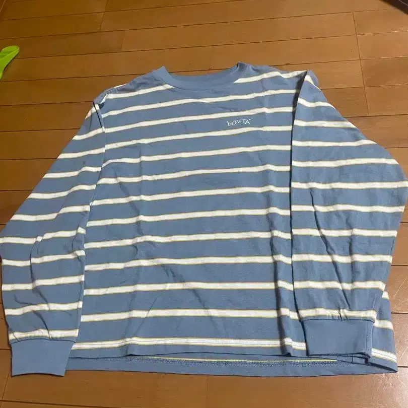 스카이블루와 화이트의 스트라이프 디자인 긴팔 티셔츠. 오사카의 셀렉샵에서 12000엔 정도에 구매했습니다.