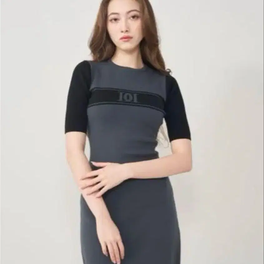 [ 미사용 새상품 ] 다리치/바이컬러 라인 니트 미니 원피스