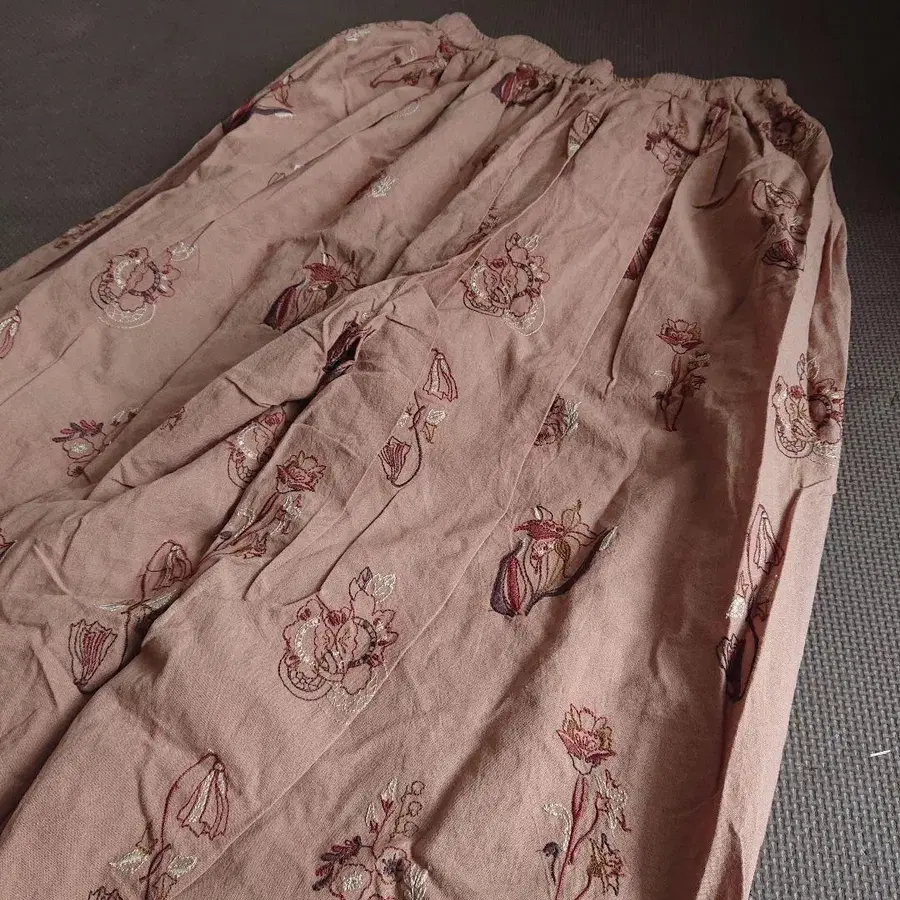 새상품 츠하루 꽃무늬 올 자수 턱 팬츠