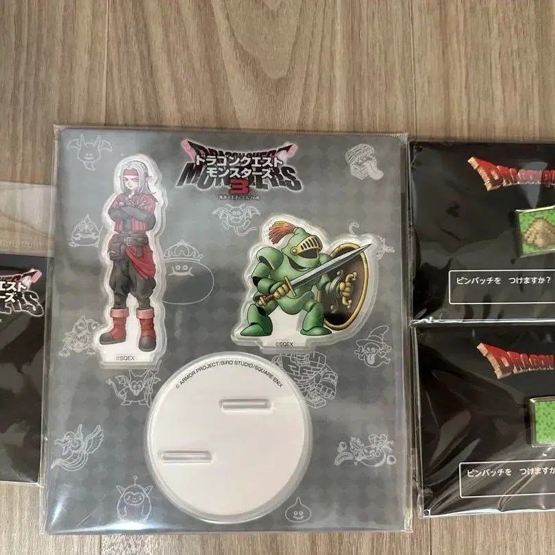 드래곤 퀘스트 몬스터즈의 아크릴 스탠드, 핀 배지 2개, 슬라임 키링 세트입니다. 즉시 구매 가능합니다.