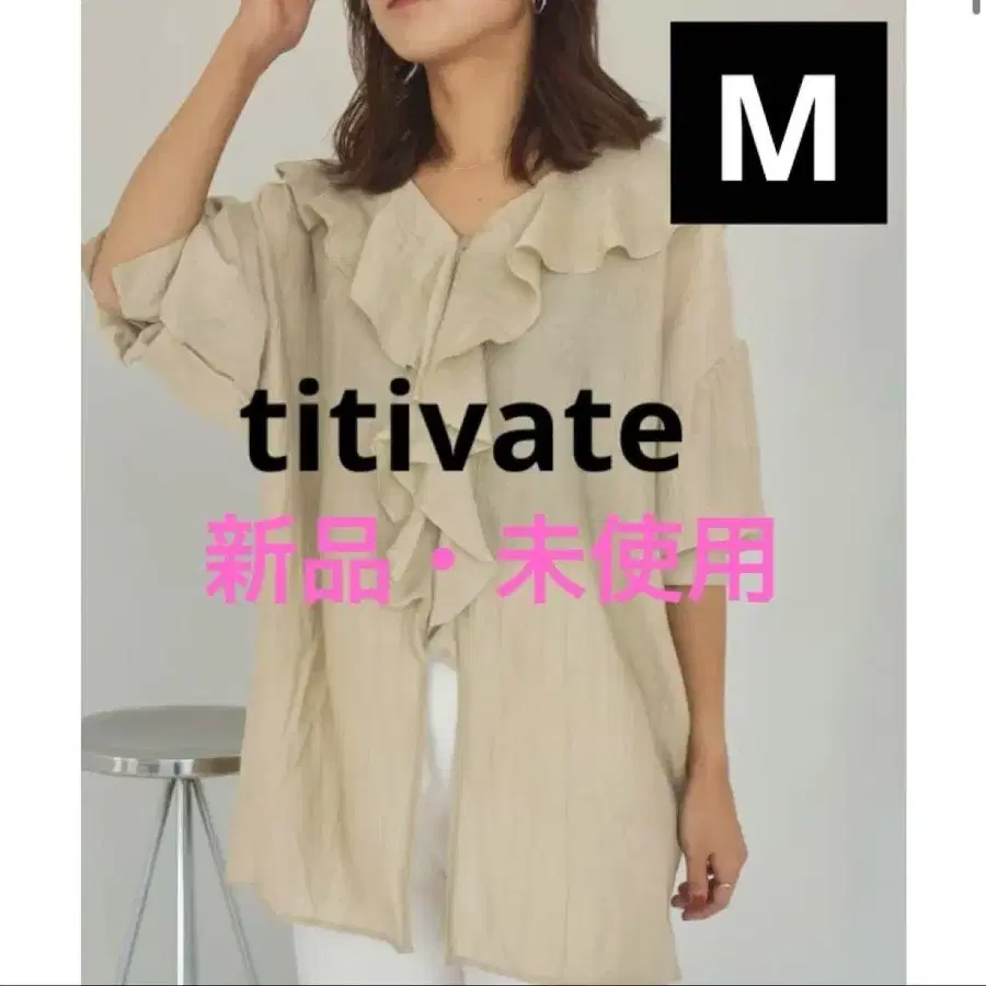 titivate 프릴 칼라 오버 블라우스 라이트 베이지 M