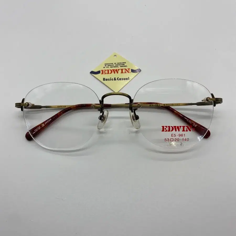 EDWIN 에드윈 빈티지 안경 프레임 E5-961 남녀 겸용 프레임 소재: 니켈 합금 프레임 색상: 앤티크 골드 53-20-140mm 가로 폭 140. 높이 46. 길이 145mm 연대는 불명입니다만 25년 전에 출시된 상품입니다. 품질은 당시와 동일합니다. made in Japan