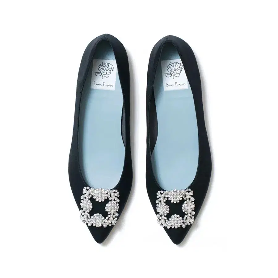 에마 프란시스 플랫 비쥬 버클 펌프스 (블랙 새틴)