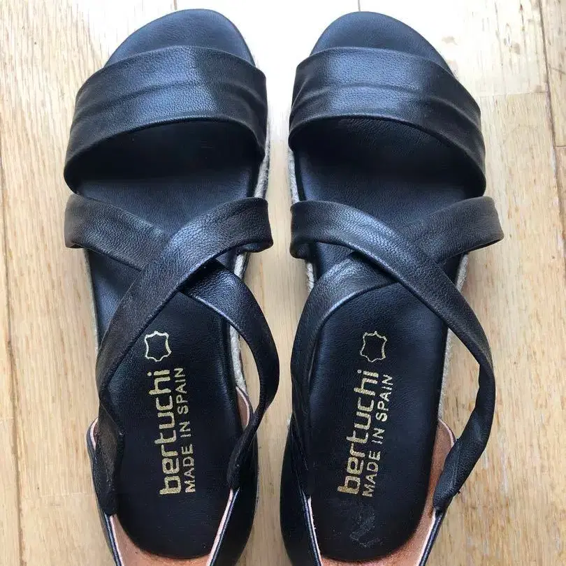Bertuchi 샌들 스페인 블랙 천연 가죽