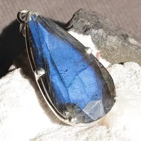 래브라도 라이트 페어 쉐이프 패싯 컷 실버 펜던트 sph776