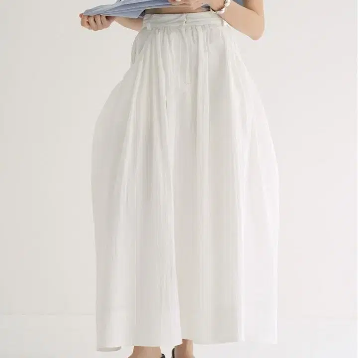 사이드에 큰 포켓을 넣어 볼륨감을 준 CLANE 특유의 구조적인 실루엣의 스커트.