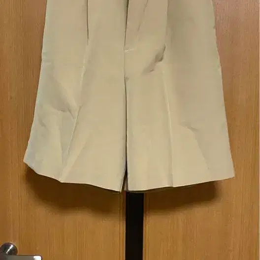 베이지 턱이 있는 숏 팬츠 무릎 기장