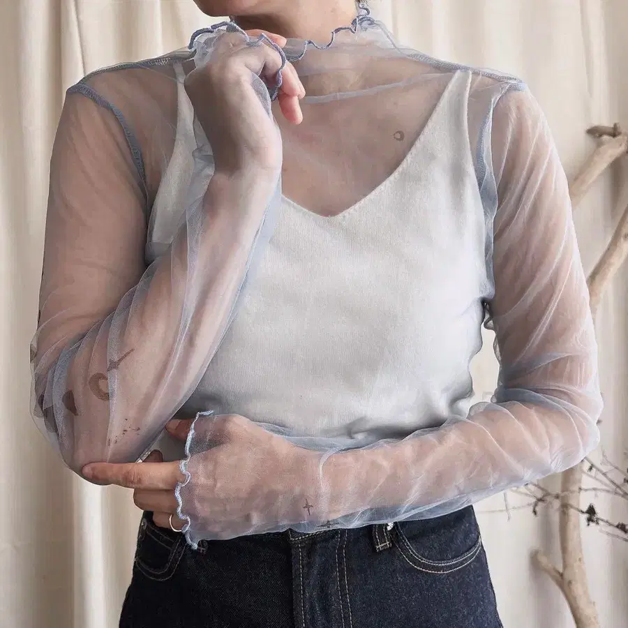 시스루 달의 긴팔 시어 셔츠 여성용 시스루
