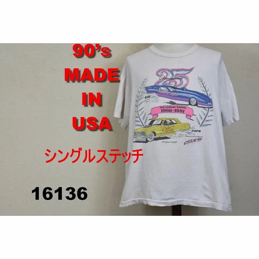 90년대 드래그 카 T 싱글 스티치 USA제 16136 빈티지