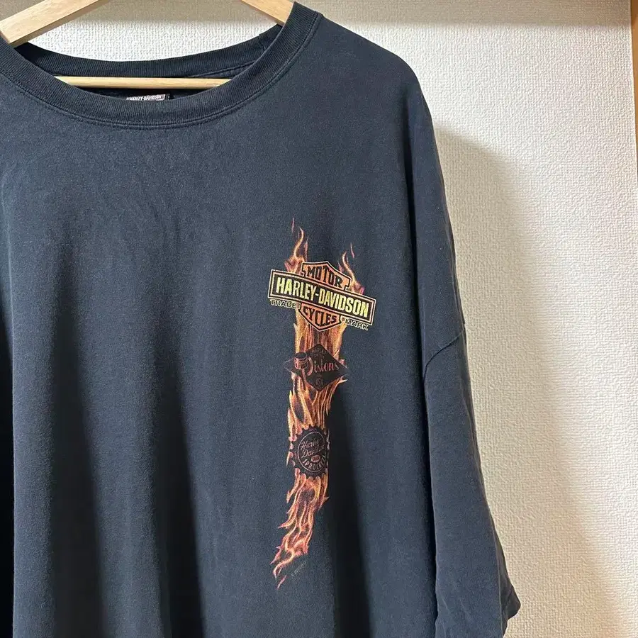 00s 할리데이비슨 파이어 프린트 썬더 구제 의류