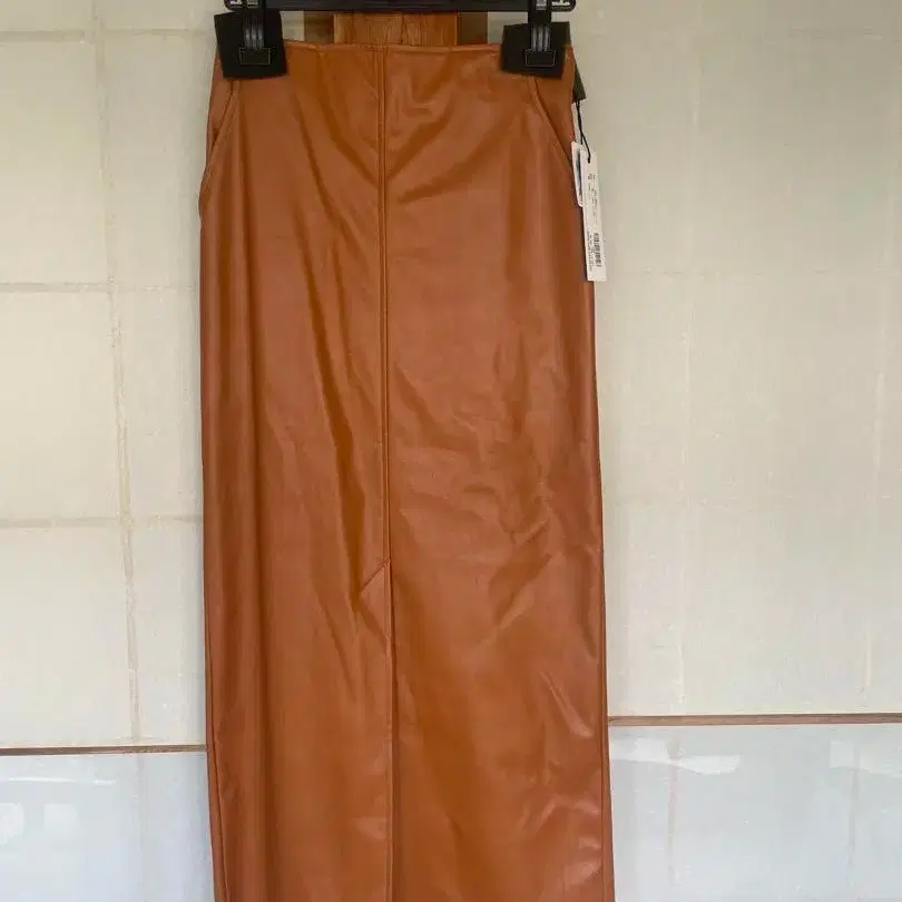 시니컬 카멜 가죽 타이트 스커트 슬릿