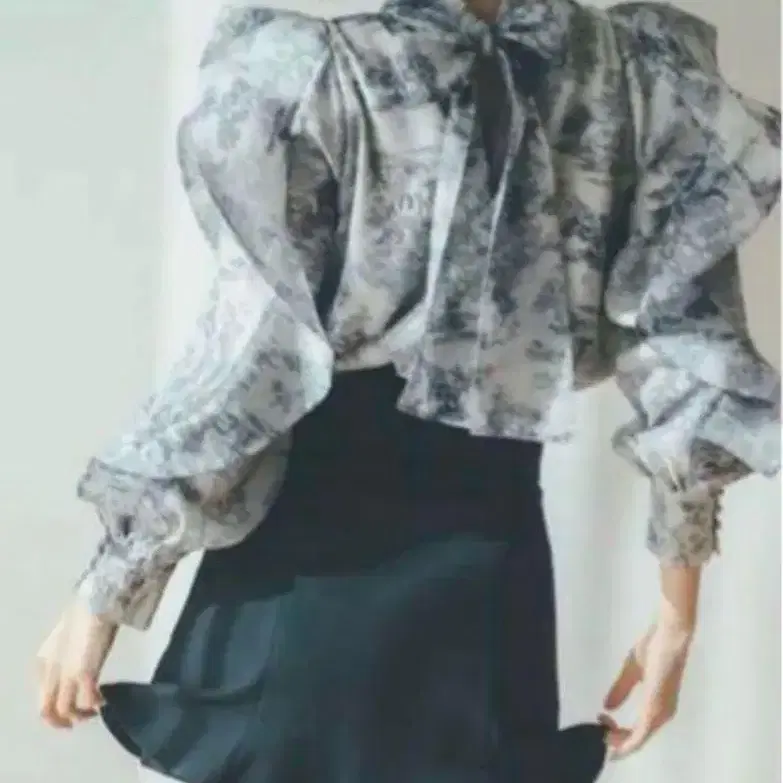 스나이델 리본 슬리브 오간자 시스루 블라우스