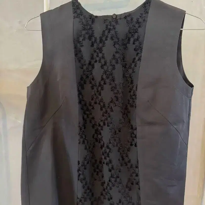 GRANDMA MAMA DAUGHTER toro 슬리브리스 블라우스 표면에 자수 같은 디테일이 특징 뒷면에 턱이 있습니다 뒷면 지퍼 - 색상: 블랙 - 디자인: 슬리브리스 - 지퍼: 뒷면 지퍼 - 소재: 폴리에스테르 - 비침: 비침 없음 기장 55cm 가슴둘레 47cm (개인 측정입니다) A 라인 실루엣 거의 미착용입니다.