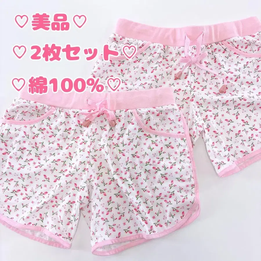 새상품급 미니 꽃무늬 숏팬츠 2장 세트 튤립 핑크 룸웨어 홈웨어