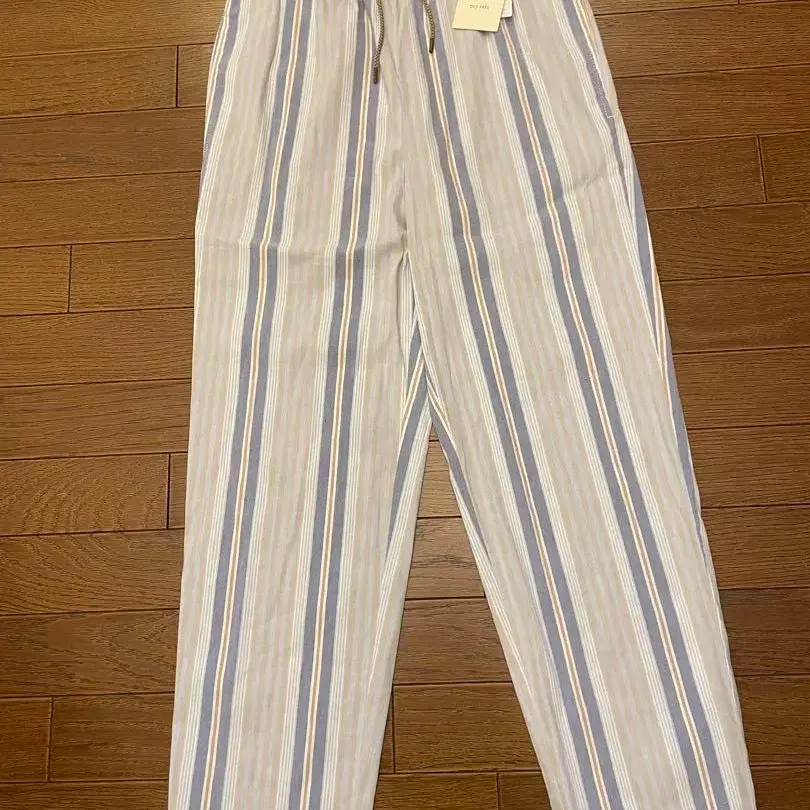 데프레 캐주얼 팬츠 린넨 블루 계열 스트라이프 정가 26,400