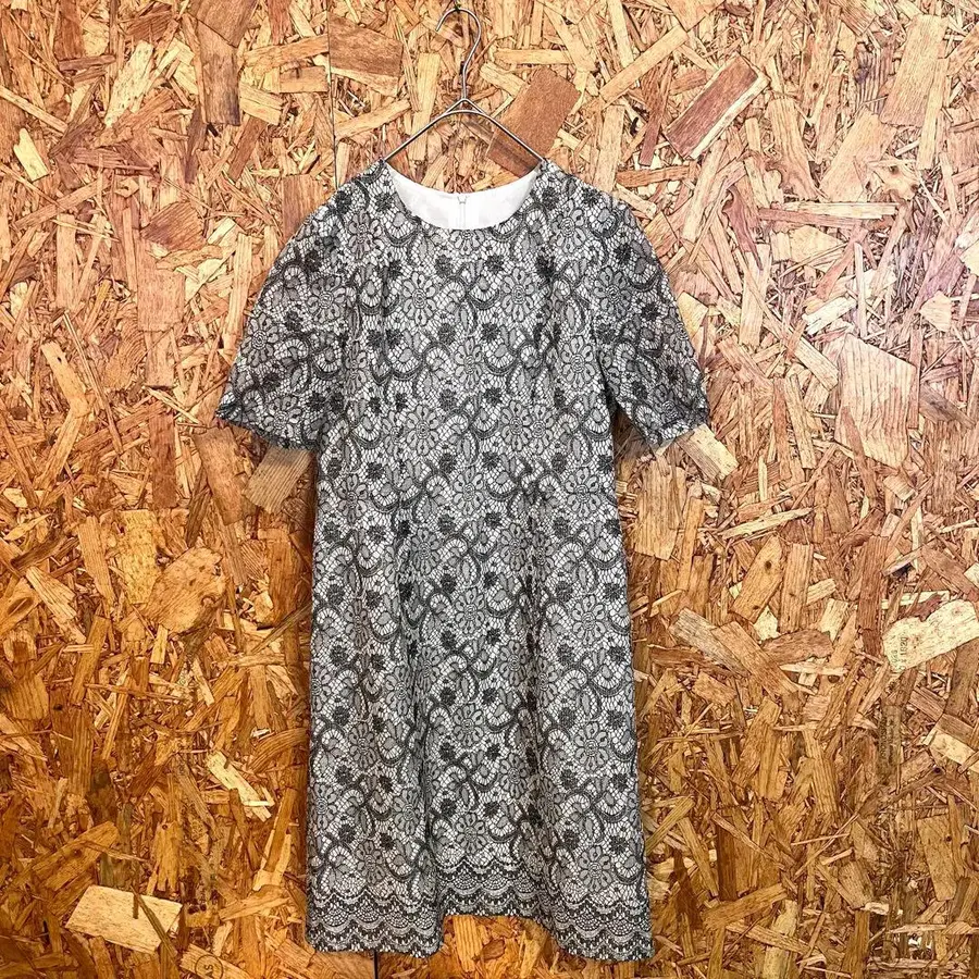 HIROKO BIS 무릎 기장 원피스 플레어 레이스 무늬 화이트 블랙 M