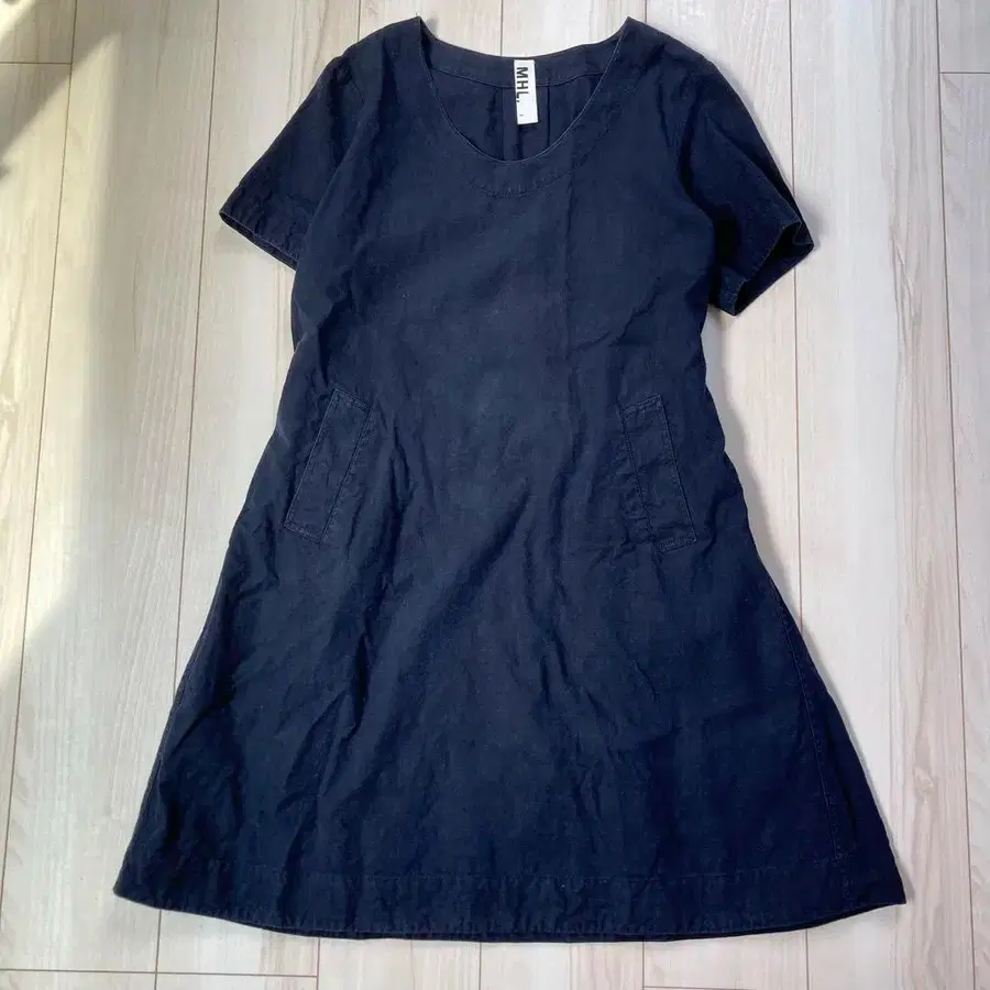 MHL 린넨 코튼 원피스 반팔 벨트 S 네이비 마가렛호웰