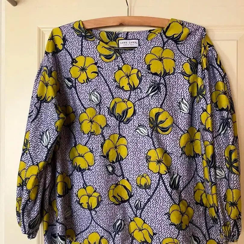 sawasawa 아프리칸 프린트 볼륨 소매 상의 코튼 플라워