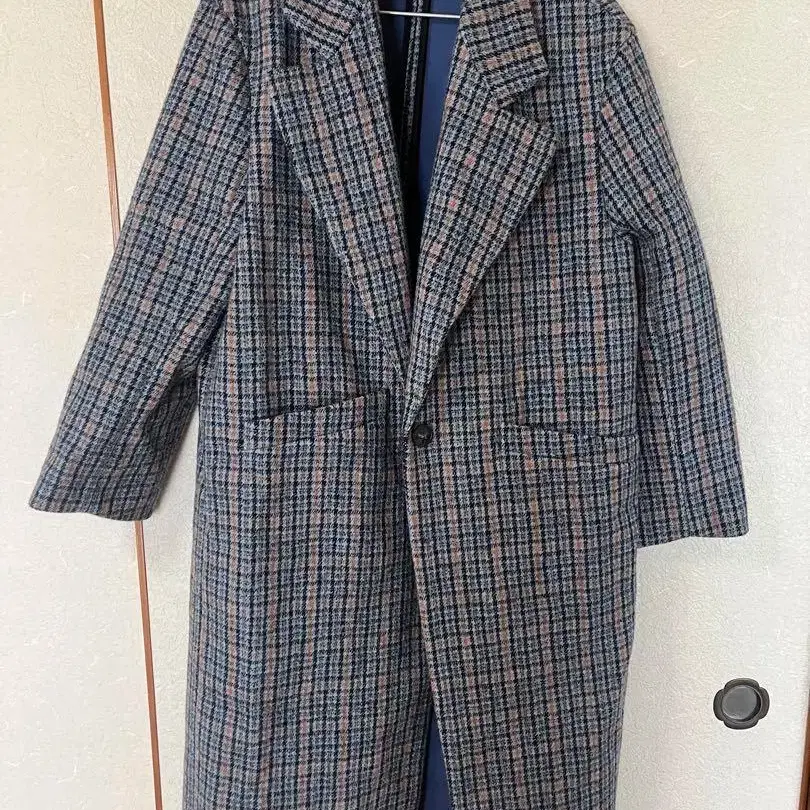 체크 무늬의 롱 코트, 오픈 프론트 디자인으로 블루 컬러의 안감이 특징입니다. - 색상: 체크 무늬 (블루, 오렌지, 그레이) - 디자인: 롱 코트, 오픈 프론트 - 안쪽 색상: 블루 컬러 안감 - 포켓: 앞면에 포켓 있음 - 칼라 스타일: 라펠 칼라 방문해 주셔서 감사합니다. 이 상품은 거의 사용되지 않았습니다.