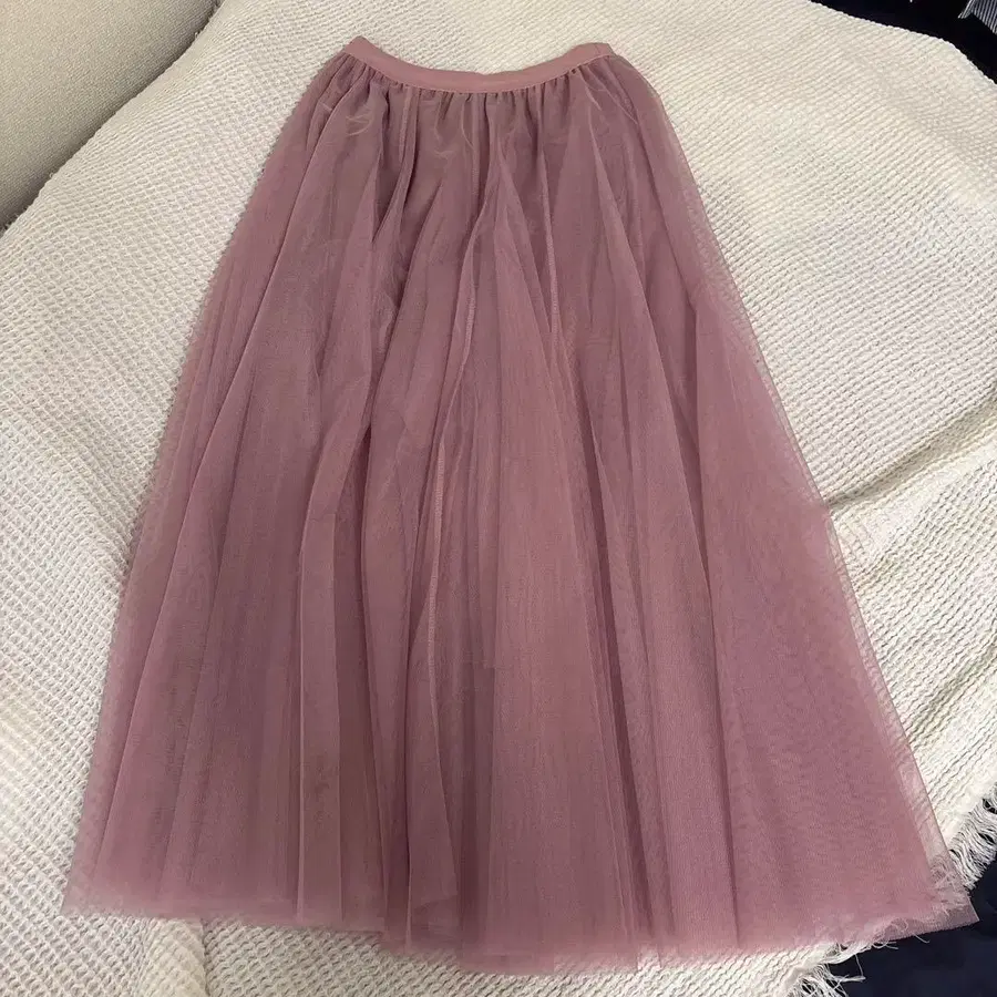 옅은 핑크 튤 롱 스커트