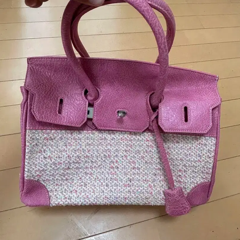 핑크색의 발색과 패턴이 아주 귀여워요. 브랜드는 모르지만 한국제입니다. 백 안쪽 바닥에 약간의 얼룩이 있습니다.
