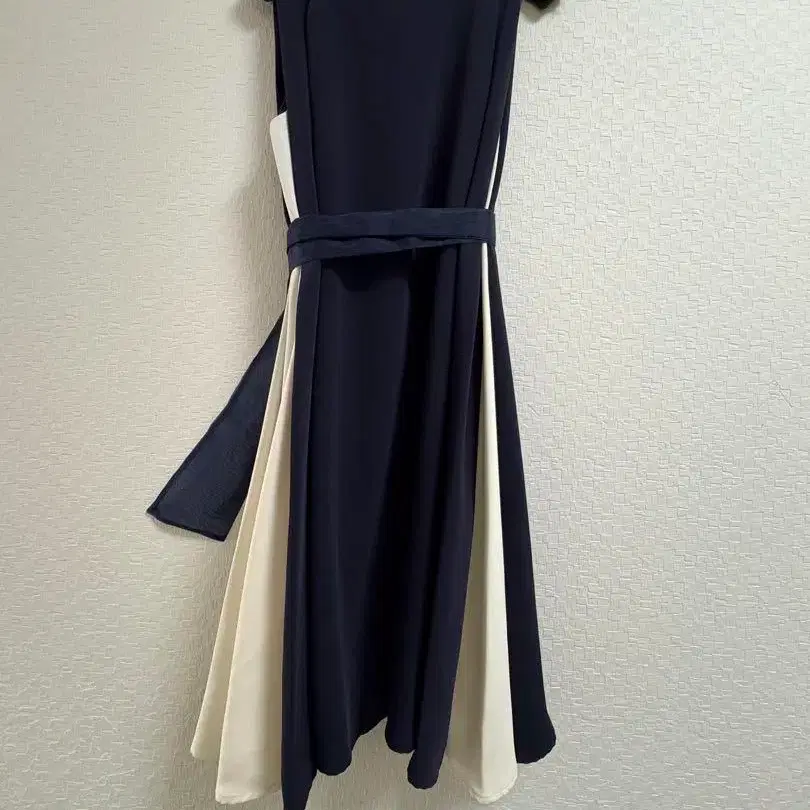 슬리브리스 무릎 기장 원피스 네이비와 화이트