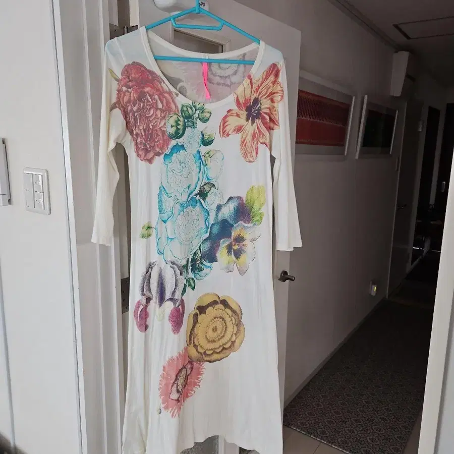 해당 상품은 아차츄의 원피스입니다. 아차츄 특유의 꽃 빅 패턴이 멋집니다. 라인이 날씬해 보입니다.
