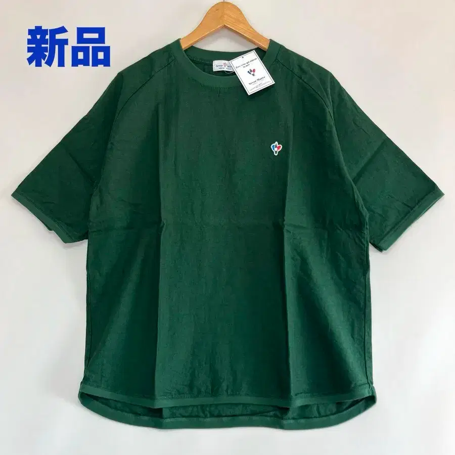 새상품 Arvor Maree 면 린넨 크루넥 FUHAKU 티셔츠 그린 S