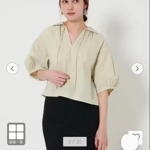 벌룬 슬리브 V 넥 셔츠 (라이트 그린)