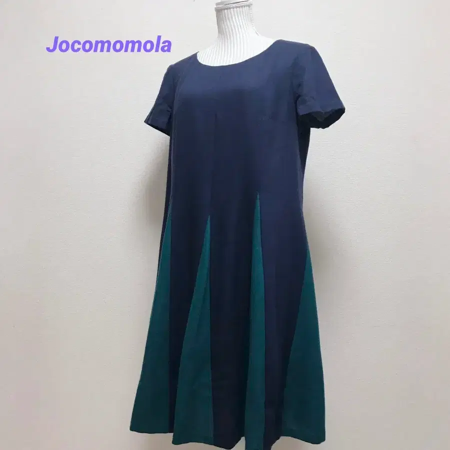 호코모모라 무릎 기장 원피스 반팔 바이컬러 빅 사이즈 울 100%