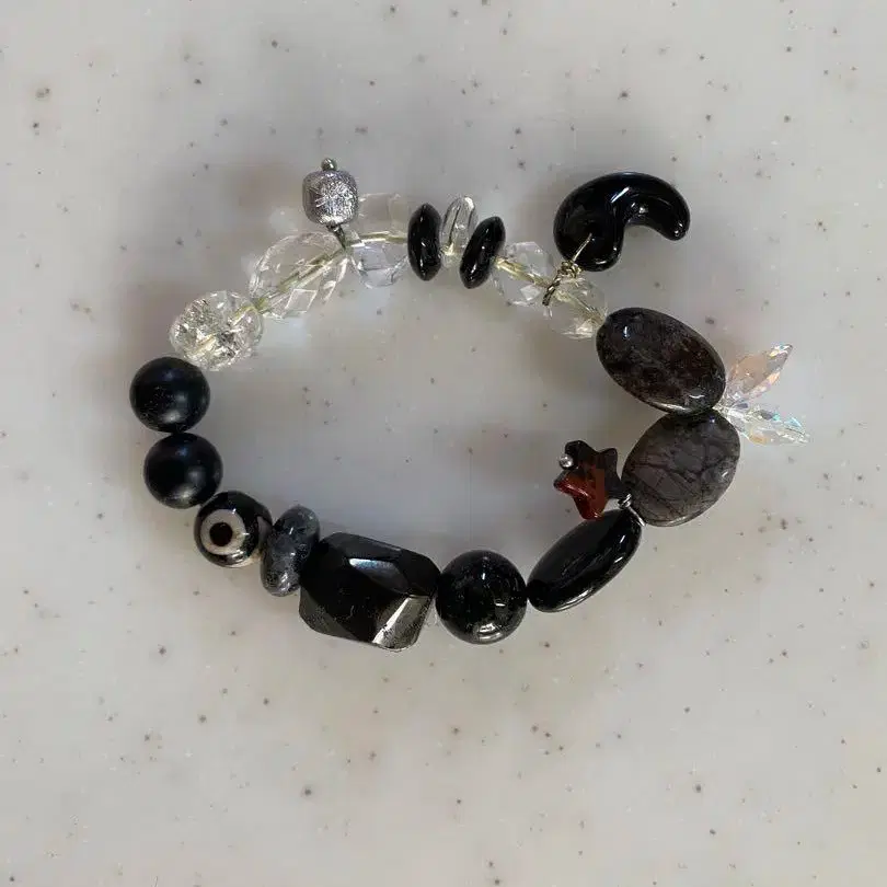 구매한 상품입니다. 다양한 모양의 블랙과 클리어 비즈를 사용한 신축성 있는 팔찌입니다. 방문해 주셔서 감사합니다.