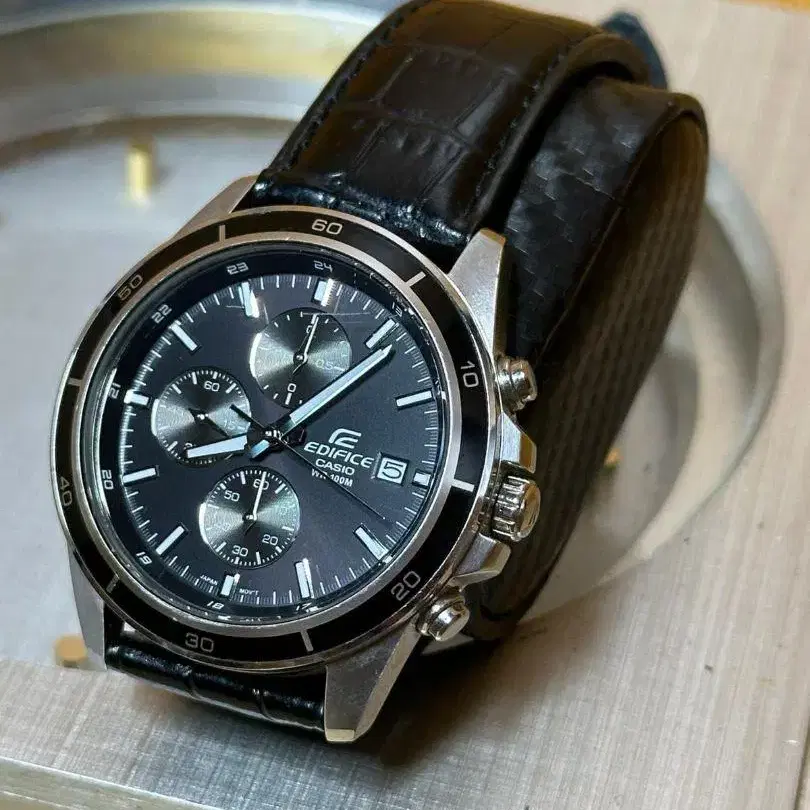 • CASIO EDIFICE EF-500 사외 블랙 가죽 밴드