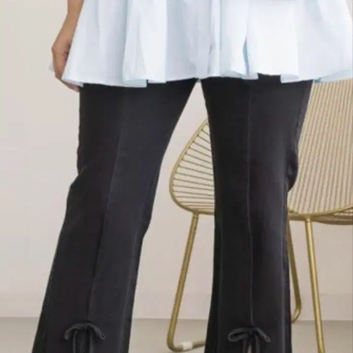 쿠레트 밑단 리본 스트레치 데님 팬츠 3L
