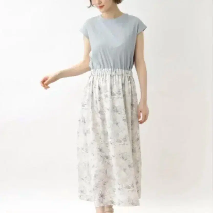 플라워 프린트 도킹 원피스 꽃무늬 스카이블루