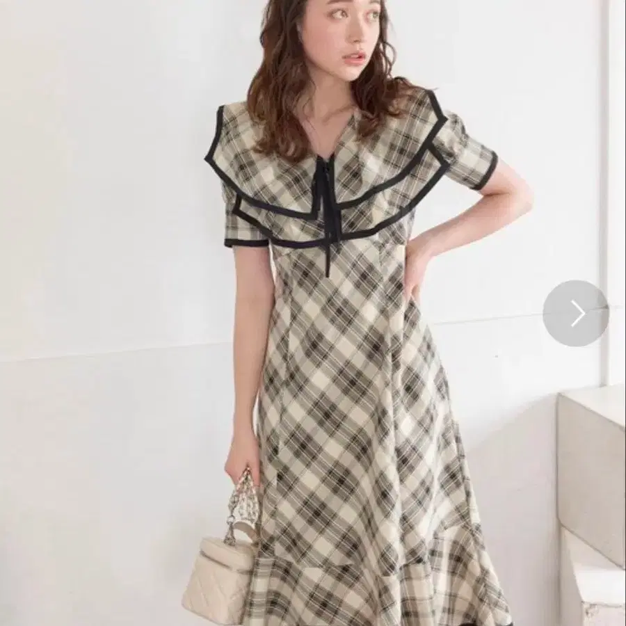 • dazzlin 빅 칼라 체크 코르셋 원피스 S 사이즈 그레이